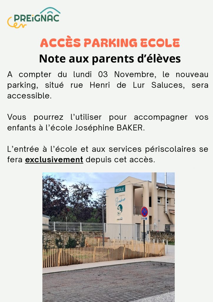 Accès nouveau parking école – Rentrée Scolaire du 03 novembre 2025